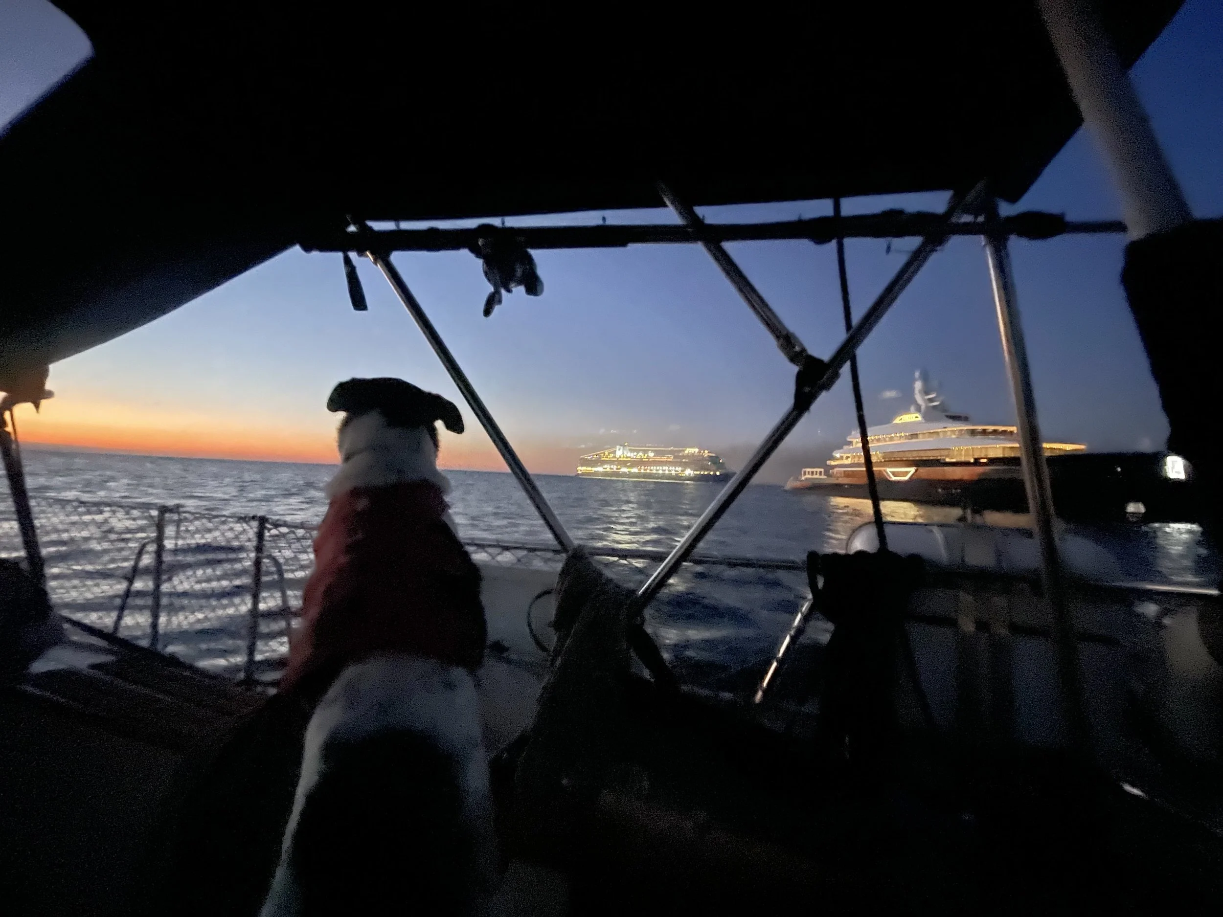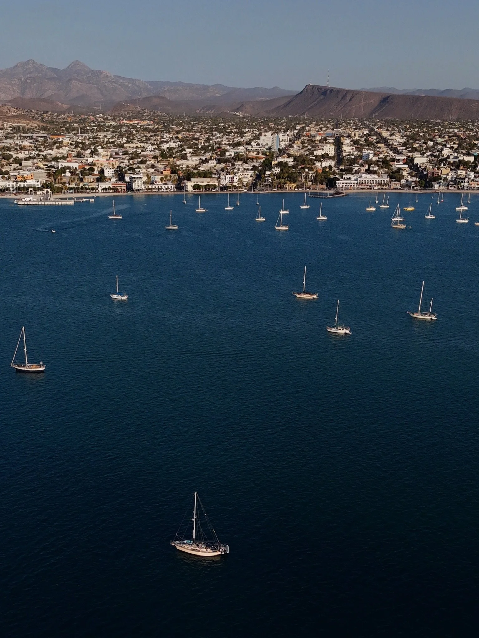 The next morning, we departed on a 20.5-hour sail to La Paz. The trip was mostly upwind, which was slow going, but thankfully, the seas were calm, and we were able to sleep. Karl took longer watches, enjoying the beautiful weather, and catching a couple of fish, while giving me time to rest before work in the morning. We arrived just as the sky lightened, and wound our way through the channel, dropping anchor in a large and populated anchorage across from the bustling city.