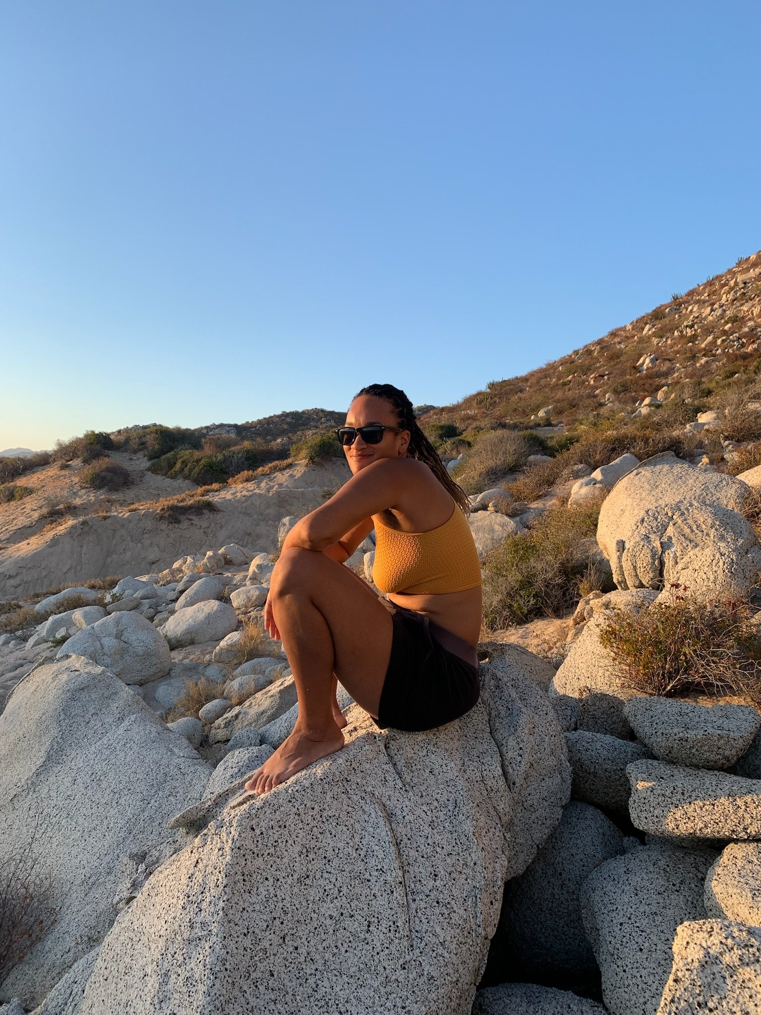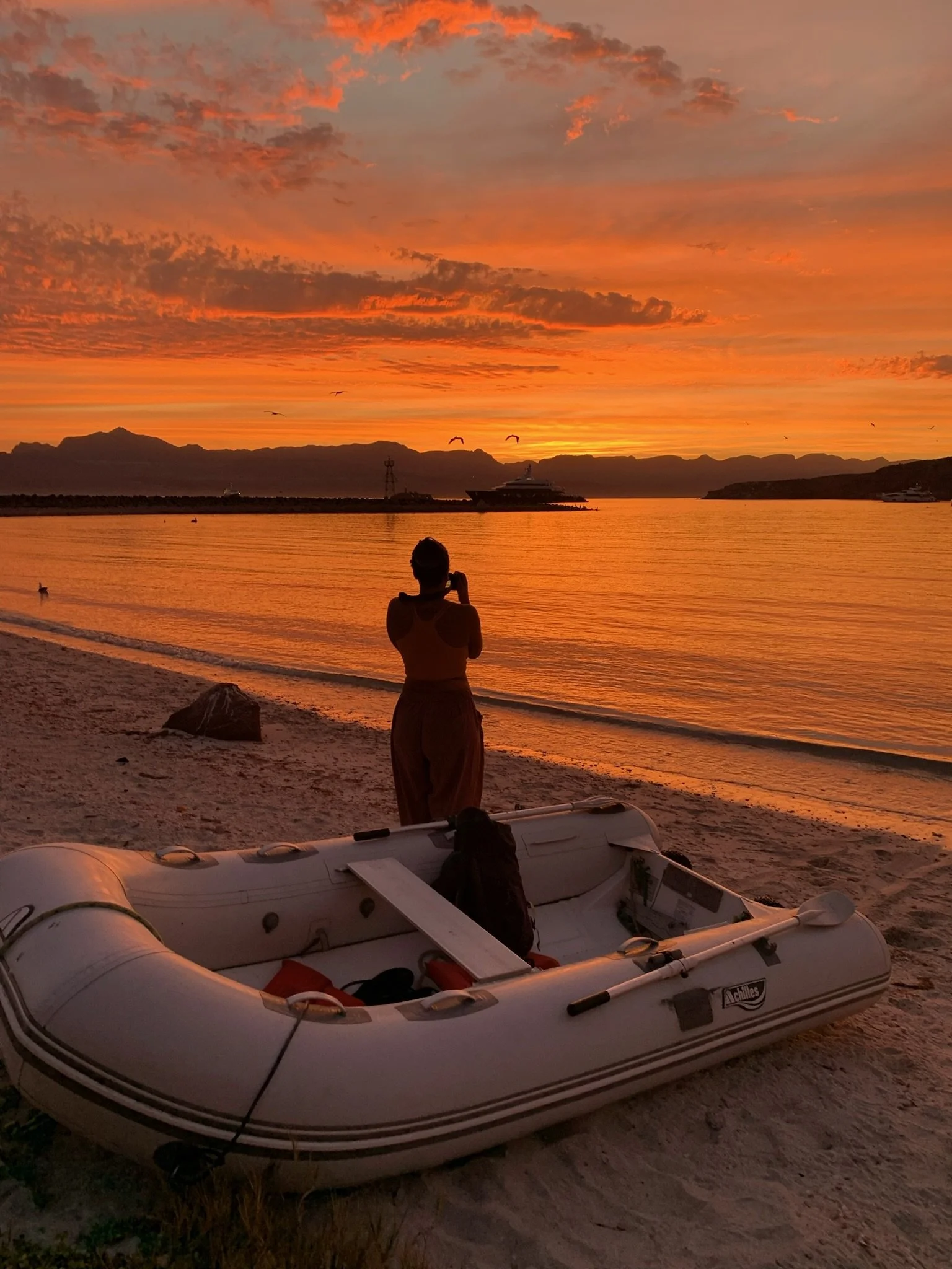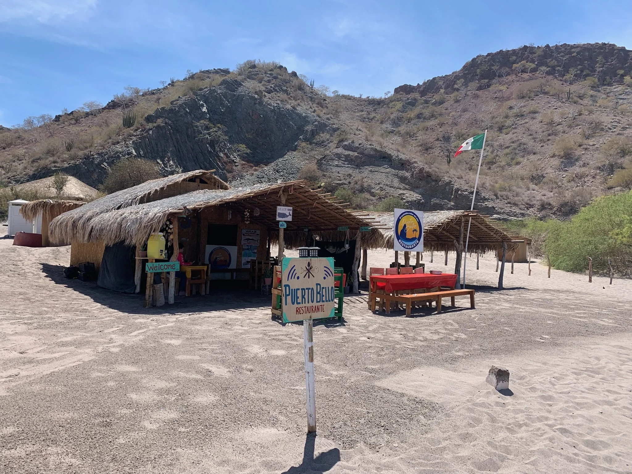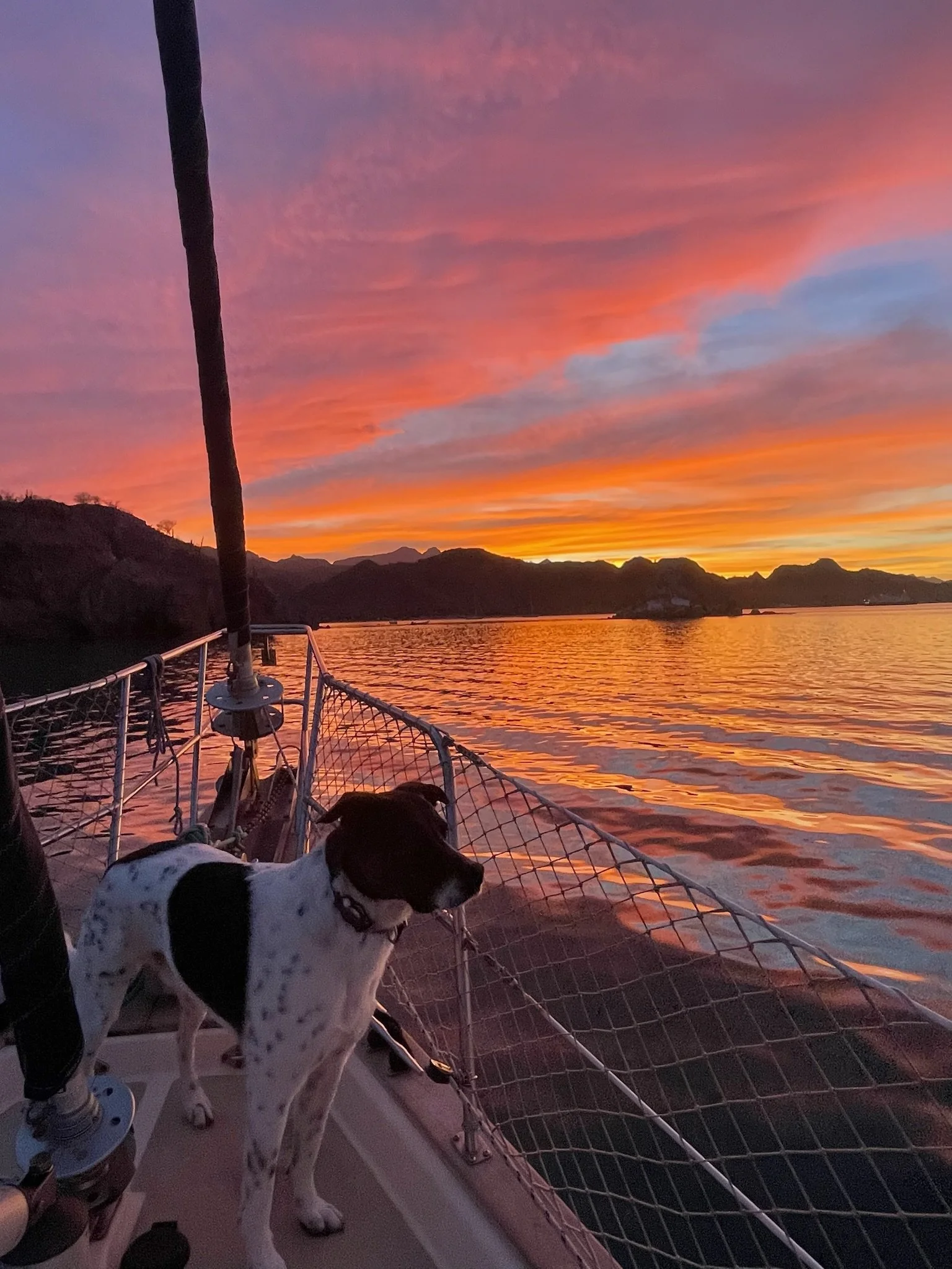 La Paz was more laid-back than Cabo, and we spent two weeks there, devouring delicious tacos, people-watching on the Malecon, and taking advantage of the huge grocery store to load up on provisions. Dolphins circled in the anchorage daily, keeping Desi running in excited circles around the deck. The highlight was a visit from our friend Sabrina, who spent a long weekend aboard, sailing with us to the nearby island of Espiritu Santo to spend an afternoon on the beautiful white sand beach, admiring shells and wading in the clear turquoise water. Our departure from the island the next day was a bit rushed, as bees began to swarm us by the hundreds, in search of fresh water. We sailed back toward La Paz, stopping to anchor for a night in Bahía Falsa, where we snorkeled a small reef and enjoyed cocktails at a little palapa restaurant on the beach.