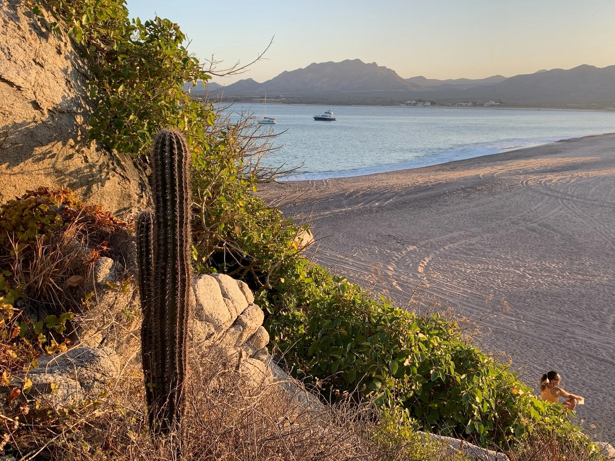 Wow, it’s been nearly a year since my last blog post, and there is so much to catch up on! Although we started our travels in Mexico late in the sailing season, we packed a lot of amazing adventures into those spring months. After completing the long journey down the western side of the Baja Peninsula last March, our initial enthusiasm on arriving in Cabo San Lucas was short-lived. While it was thrilling to have sailed to such an idyllic place that we had seen on many a travel advertisement, and we enjoyed the conveniences of a dinghy dock and a large grocery store, the chaotic levels of activity in the anchorage got old quickly. Jet skis zoomed around yards from the boat all day, their wakes slamming against Otaria’s hull so violently that Desi ran for cover, and working at my computer, I felt more nauseous than I ever had at sea. Cruise ships arrived early each morning, unloading thousands of passengers, and party boats circled us, blasting club music. We counted down the hours until sunset, when the crowds of tourists moved from the water to the clubs and restaurants on shore, and our home once again felt peaceful. After a few days of this, we abandoned our plan to stay until the weekend, and after exploring the shops, enjoying a meal out, and stocking up on provisions, we left at dawn mid-week, sailing nine hours northeast to Los Frailes. It was my first time working underway, but the motion from sailing was nothing compared to being at anchor in Cabo, and aside from missing out on some whale sightings, I did fine.