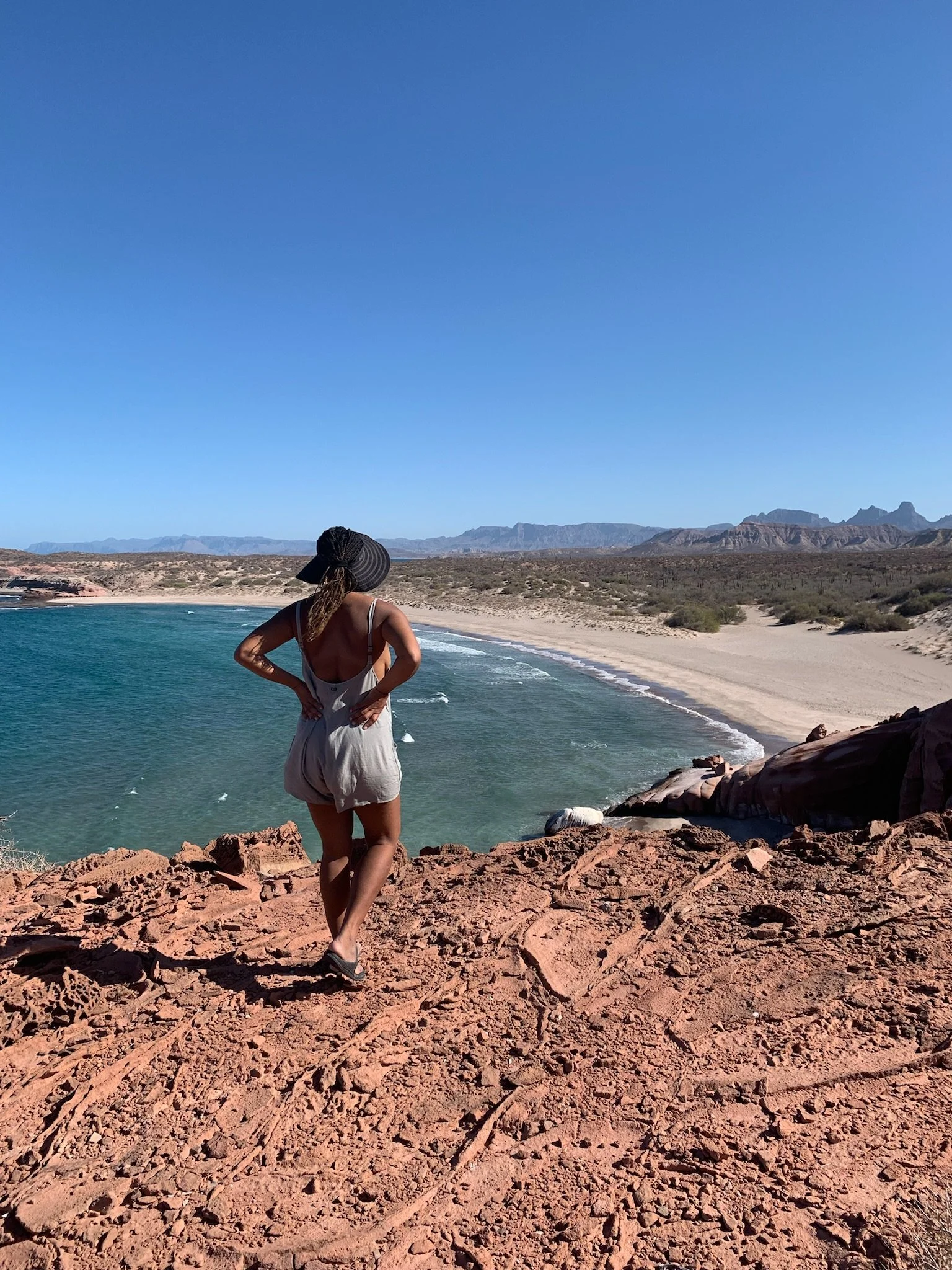 Just two hours north of Isla San Francisco is Isla San Jose, a much larger island that was once home to a salt farming operation but is now uninhabited. Arriving at Punta Salinas, an anchorage on the south side of the island, with no other boats in sight, we dropped anchor and soaked in the quiet. The following evening, we rowed to shore and hiked through forests of saguaro cacti, salt flats, and the ruins of the old settlement. As if they had followed us there, one by one, the charter boats and mega yachts arrived near us, and our tranquil anchorage transformed. I finished out the workweek while Karl handwashed our laundry and rigged a temporary fix for the windlass. When Saturday arrived, we set sail for our next stop, Puerto Los Gatos, a picturesque anchorage on the Baja mainland, known for its unique and colorful rock formations.